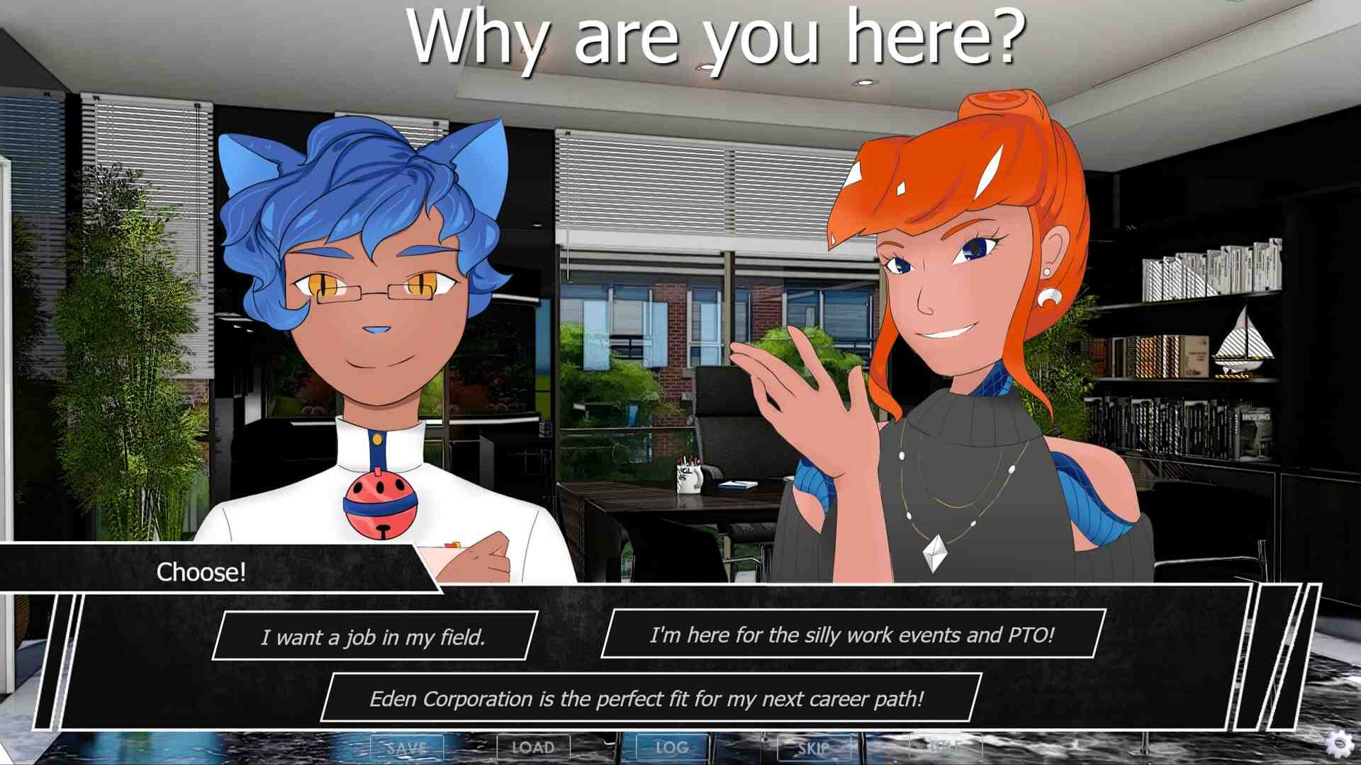 They’ll even stop time for you… better hope you impress them with your interview technique, though – there are only so many employers in the world. The world of corporate interviews can be dark – and many lose hope, but with our help you can succeed! Discover the truth about your prospective employers and your nightmares as you embark on your epic quest for employment. When you take a concept as intimidating and nearly unavoidable as going to a job interview and make it into a story of about characters fighting for your attention, You got a story that makes the player feel like you’re part of the story rather than having the player fill the blank to each part. The characters are vibrant and unique and the voice acting also helps bring each character to life. Each chapter has a lot of importance to the gameplay and you wouldn’t feel bored or burdened because the emotions of each character finds ways to either keep you involved or keeps the story going.