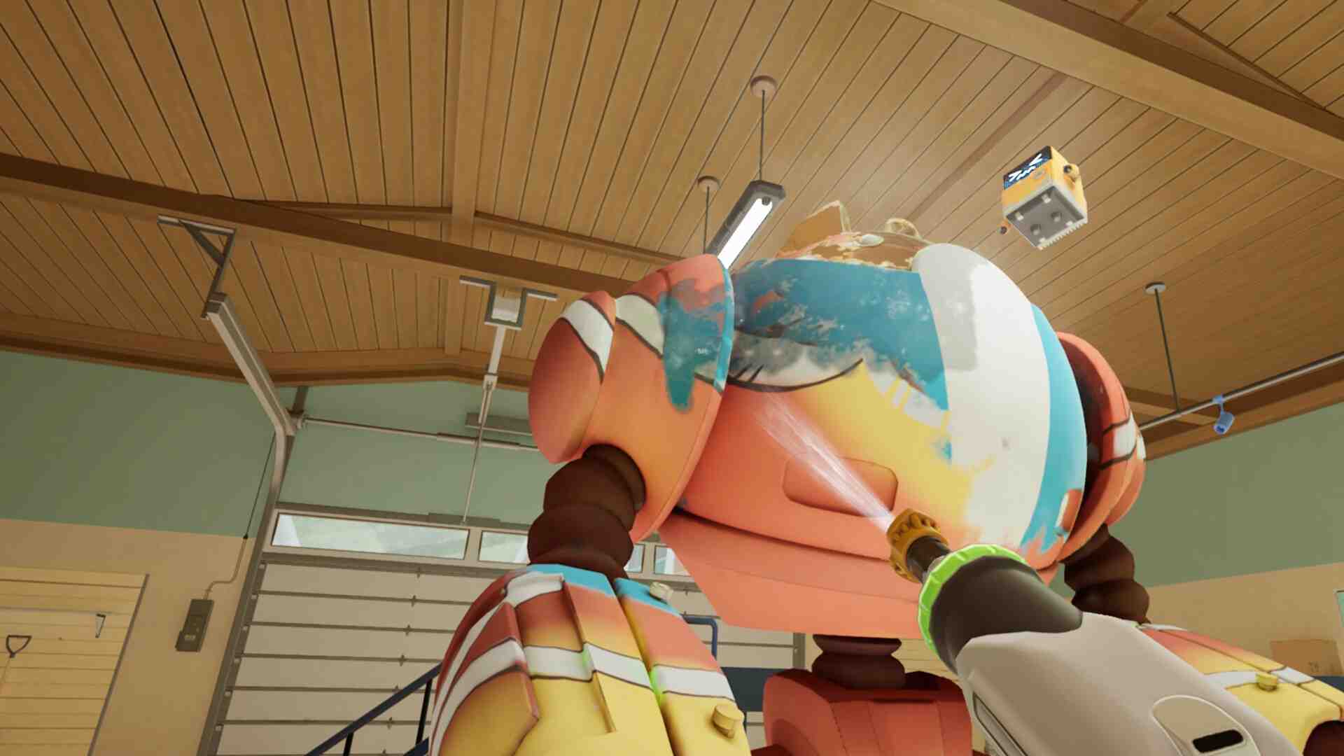 It would be one thing if it was explained further but the story is scatterbrained and borderline not even there. That being said there are some good features here, the robot helper is a great addition, and helps by pointing spots you missed. The movement in VR is great as well for this sort of game, you’ll have to duck under or reach over items to wash them, or manually extend your barrel to gain some extra reach. There is also a paint mode where you dirty up a level and can upload your work so others or yourself can go in to wash your doodles away. The best way to describe this game is if you bought Powerwash Simulator off of Temu. It plays okay, it’s relatively smooth and doesn’t have many glaring issues game-play wise.