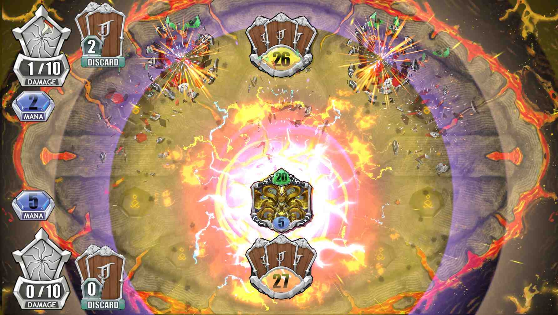 Balanced Risk and Reward with Card Devolution: Face the unique challenge where high-level cards, upon defeat, transform back into their original forms rather than being destroyed. This balanced risk-reward system keeps your strategic play dynamic and engaging, constantly calling for your tactical adaptability. Adaptive Mana Pool System: Primateria introduces a unique mana pool system tied to the fusion mechanic. This system doesn’t just govern card play but also powers up your special abilities, adding an additional layer of strategy to your gameplay. “Dual Graveyard” Dynamics: Primateria introduces a dual graveyard system – the “Damage Pile” and “Discard Pile,” adding complexity to the management of defeated and discarded cards and introducing a new strategic element to the gameplay. Protection & Repositioning Mechanic: The game’s design incorporates frontline and backline battle dynamics, forcing you to think critically about card placement and repositioning strategies, enhancing the depth of tactical play.