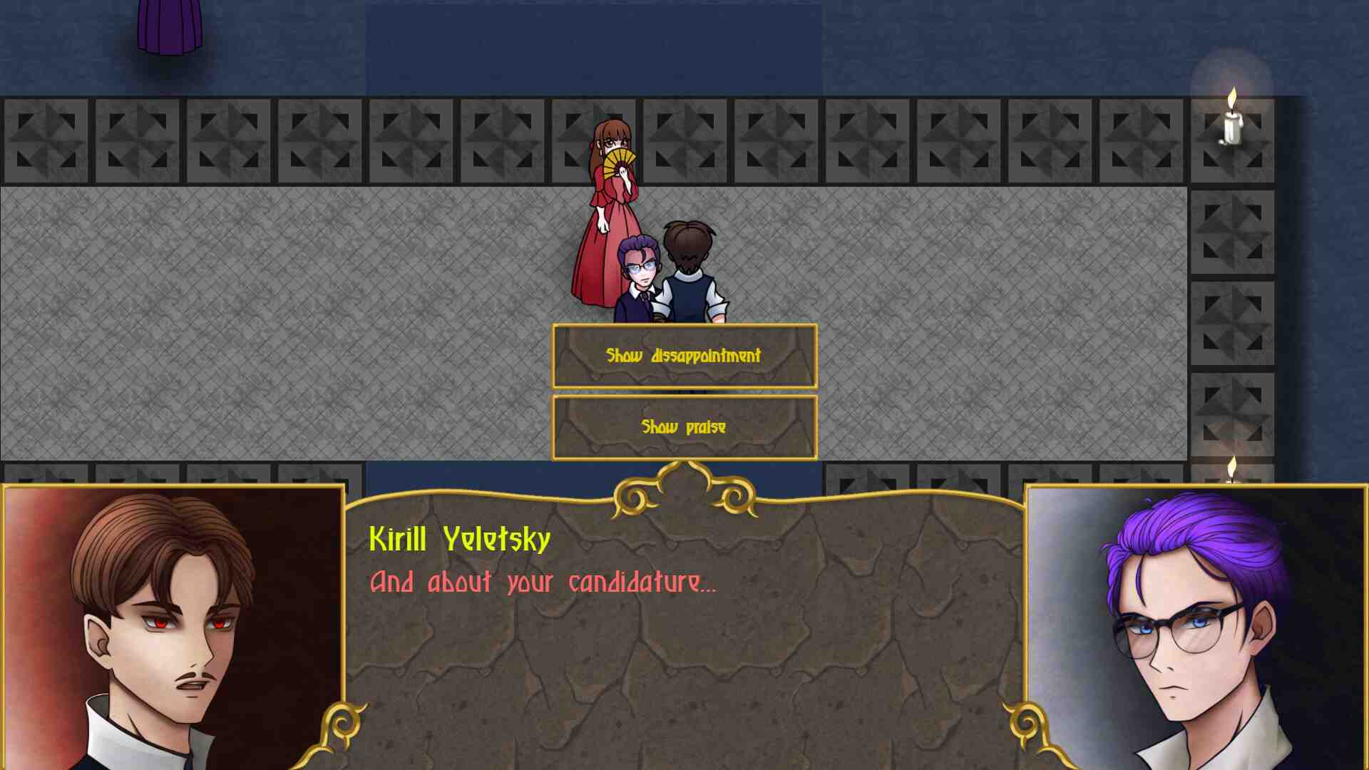 Saint Petersburg Academic University of Necromagic. In the society of prevailed neofeudalism necromages hold power. Kirill Eletsky is a noble young man and a fifth-year student at the academy of sorcery. He wishes to protect his family from accusations of treason before the tsar, and he must become a winner in the most prestigous necromagic tournament in the empire. Only your decisions will decide which way he fulfills his wish. Immerse yourself in a world where magic lives in symbiosis with technology! Develop relationships with other characters, each of them can influence the outcome of the tournament! Socialize, spend time, and send gifts to other noblemen to earn their loyalty! Choose carefully your partners to help you win battles! Prepare yourself wisely for battle by picking the most suitable armour, weapons, and spells! Be smart about how you allocate your resources – your spare time is limited and your enemy is always stronger and richer than you! Train Kirill to become the best necromage of modern age! Gather an army of the like-minded necromages among students and make the Tsar play by your rules.
