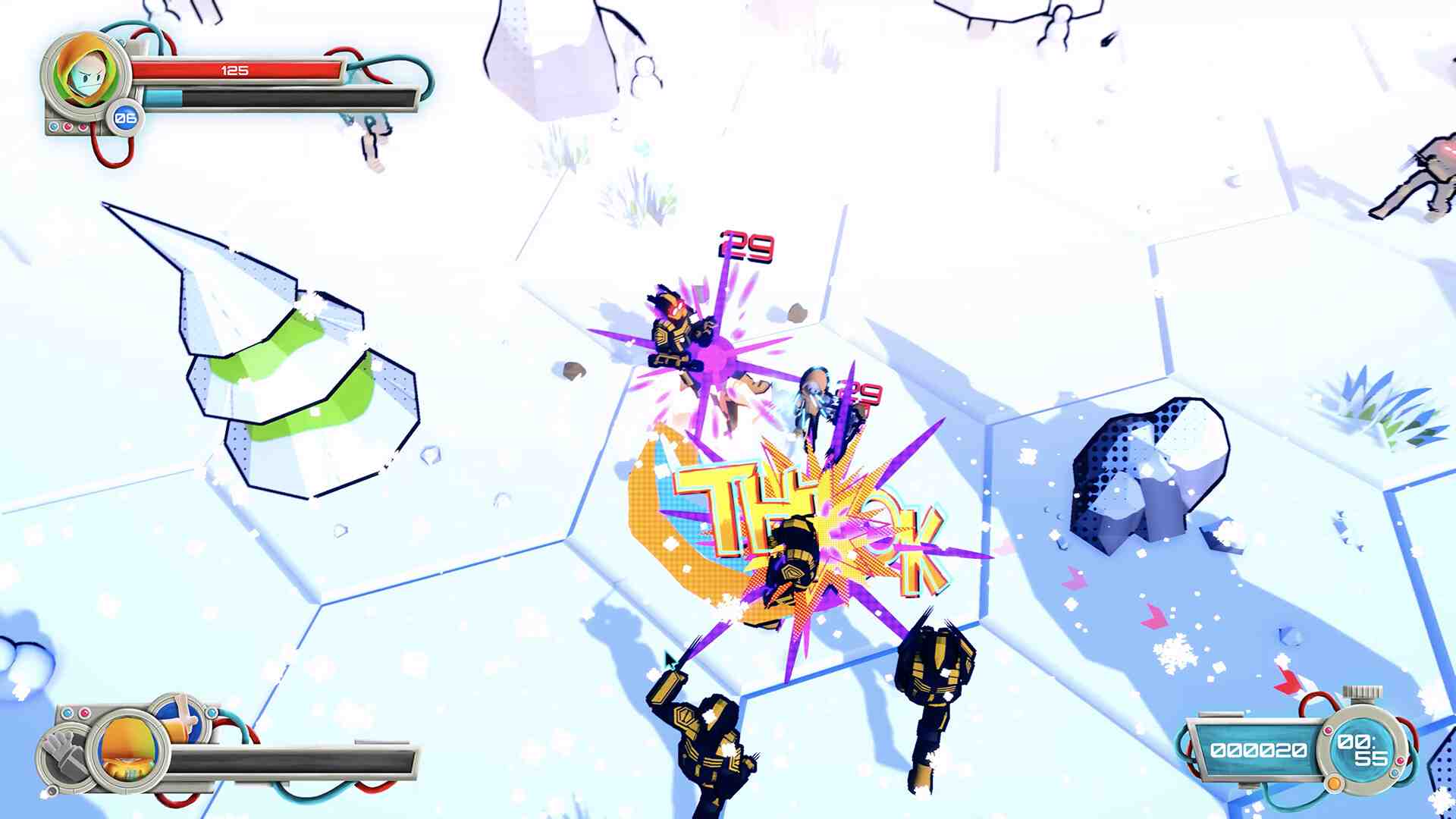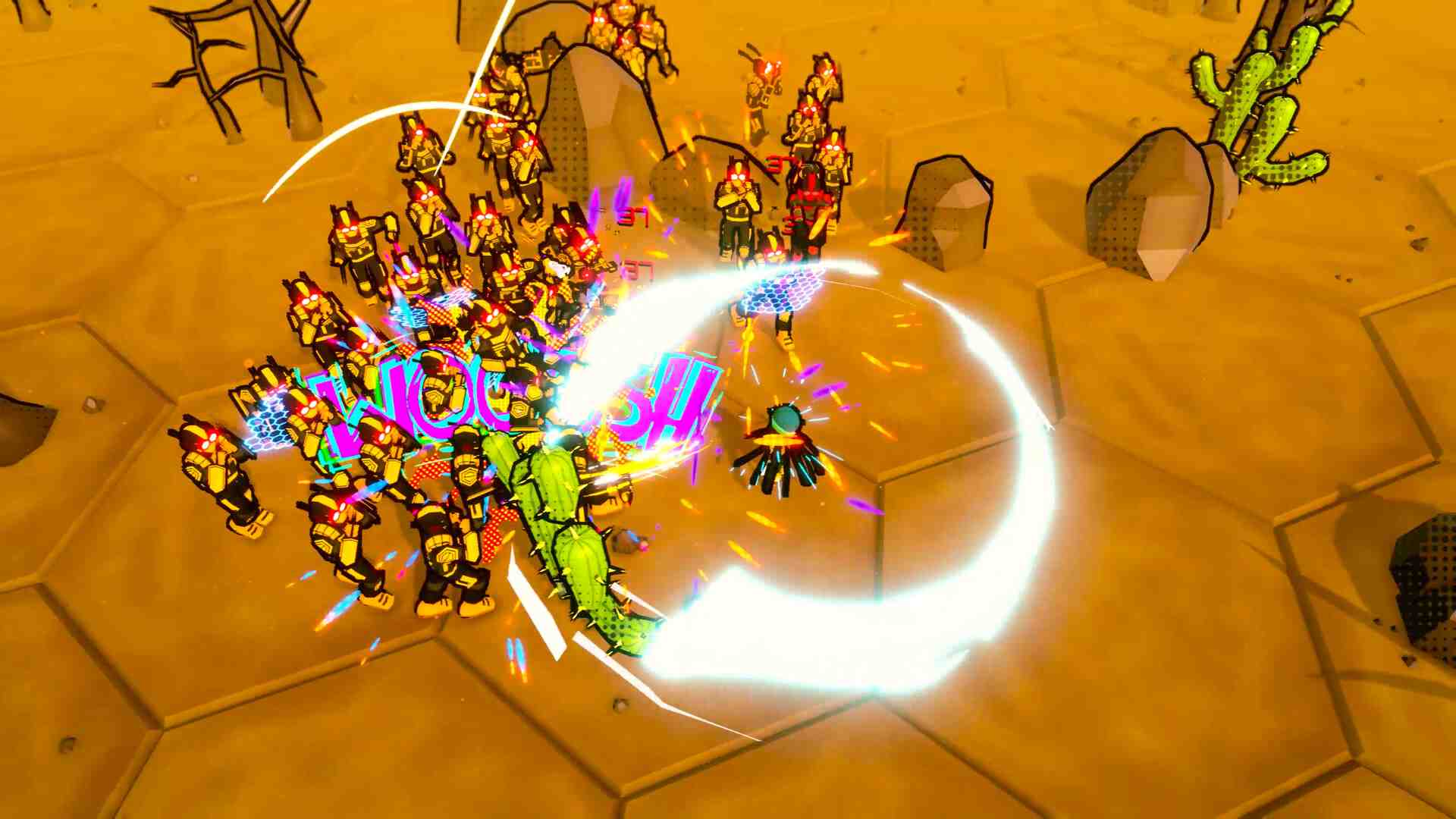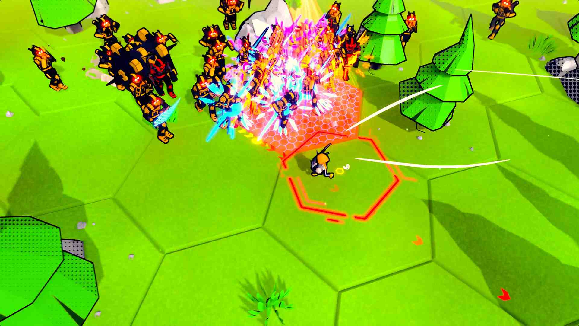 You’re pitted against the highly-trained armed security forces of the H.I.V.E. Medical Corp. They are skilled and deadly, using a variety of weapons. In addition, you must face and defeat five increasingly dangerous bosses. You can choose to play in different stages, each offering a different visual experience. Better yet? If you’re looking for hardcore challenges, some of the stages (or stage levels) come with additional environmental hurdles. You can also use the elements in your surroundings strategically to aid your escape. For istance: Natural obstacles, such as rocks and trees, can be used to break down or slow down the swarms. Areas highlighted by enemy-dispatched drones, designed to aid the enemy, can be used against them. Anyone entering the affected area suffers the consequences. The unique mechanic of each stage (the darkness level really impressed me) and the drones effects are a nice twist in the survivorlike games. Being twin stick is also a big plus for me! The bosses have nice visuals and also create a very nice progression.