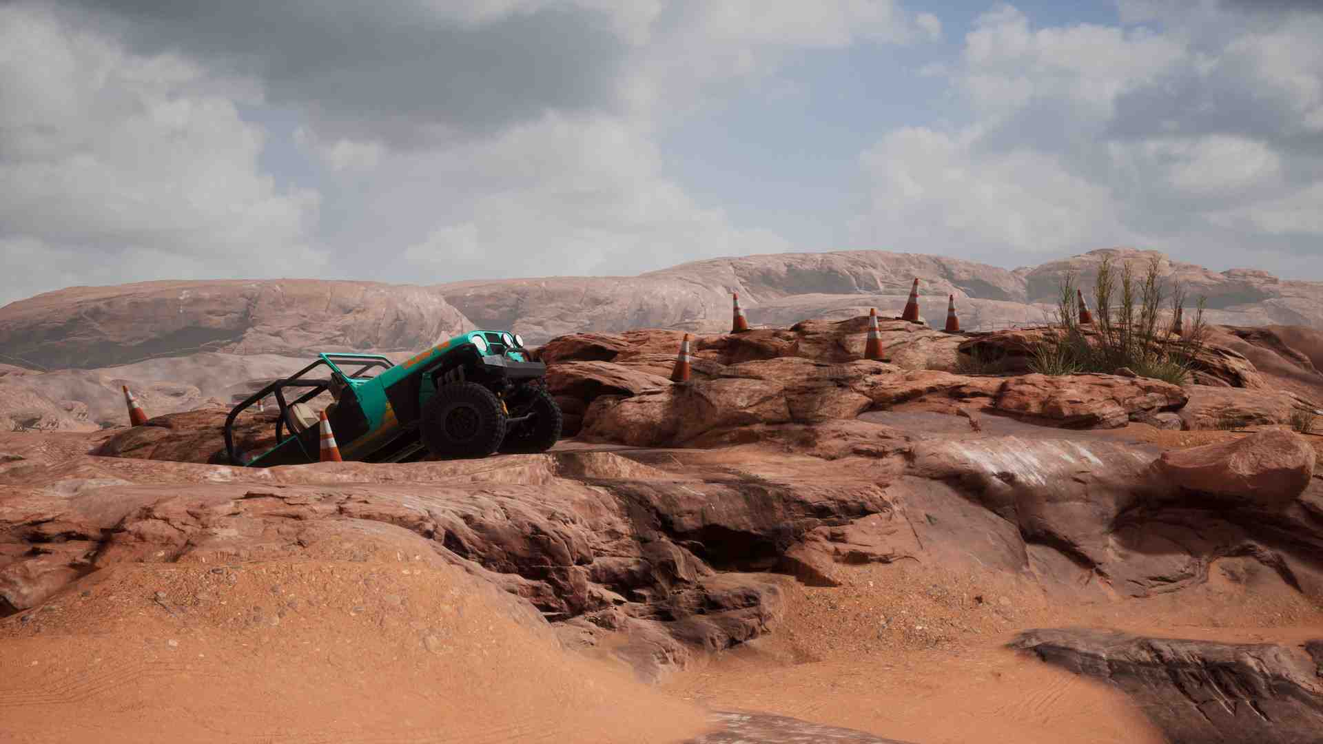 Pure Rock Crawling is a game build around the concept of making the best tire and the best suspension simulation. The main goal was to create a slow, immersive ride throughout rocky trails, forest hills and flat deserts. That kind of ride is the best way to admire beauty of rock crawling. the Challenge – Pure and Simple The challenge is simple: on trail you will find ten gates composed of two cones, none of which should be touched or tripped. For every gate passed you will be awarded with points, for every cone tripped you will loose them. Be precise and concentrated to gather as much points as you can, but be aware of the ticking clock, so be careful with the throttle ! Too much or too little can doom you. Pure Rock Crawling encourages you to take on this challenge to unlock new maps and customization items.