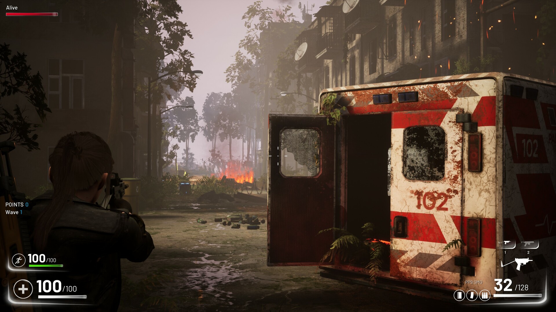 PURGE – Three vs Blood: A classic wave-based zombie game. PURGE – Three vs Blood is an arena zombie apocalypse where you fight with up to 3 players against ravenous zombie waves and unlock ranks, maps and unique characters. A variety of light to heavy weapons and traps are at your disposal! Are you ready? Your concentration will be challenged to the point of exhaustion. How many waves can you manage? Compete alone or with friends in co-op mode with up to 3 players against the enemy zombie herd. Your task is to hold off the ravenous zombies for as long as possible. With each wave that starts, the zombie wave gets stronger. You earn points and can exchange them for new weapons, traps and other areas at any time. Be ready to help your teammates at any time. When a player is injured, you’ll hear it through a pulsating heart. You only have a few seconds to save him, otherwise he’ll be lost forever until you finish your wave.
