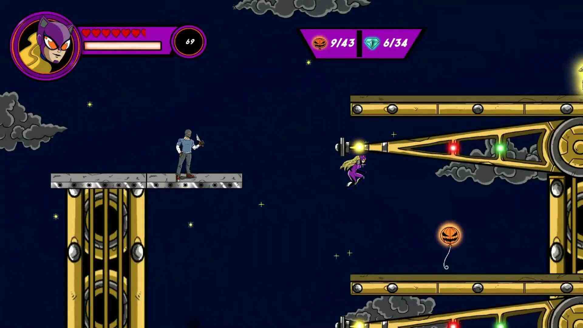 Take on the role of Dynamo City’s newest vigilante Quickclaw in her fight against organized crime! Dynamo city has been attacked by a dangerous alien race. Luckily the heroes of earth intervened and eliminated the threat. With the city in chaos many new super-villains took control of several neighborhoods. With the bigger heroes engaged in global threats, only the new vigilante Quickclaw can save the day! Rid the neighborhoods of crime and raise your reputation as a new vigilante. Use quickclaw’s feline abilities such as super jumps, speed and super-strength to fight and move quickly across the city’s rooftops. Experience the game from the point of view of two opposite characters, each with a certain style of play: QUICKCLAW: the new vigilante, fast and powerful, she is suitable for the vast platform stages. NIGHTSHADOWL: The terror of criminals, the A-class superhero, genetically enhanced and equipped with super armor and numerous gadgets to deal with crime, suitable for Metroidvania and Arcade-style levels to emphasize his brutal fighting style.