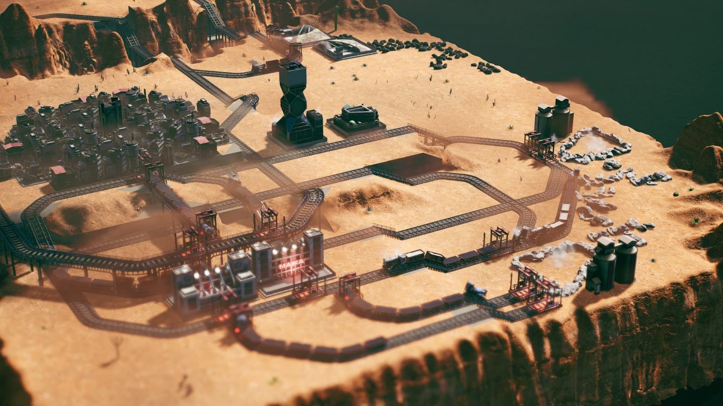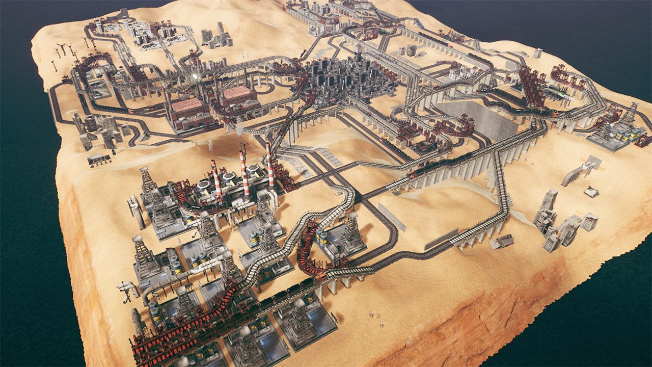 Optimise your train set-up and place tracks strategically to navigate challenging environmental terrain and create the most effective delivery route possible. Control the flow of resource production through careful management of inputs and outputs. Watch out for bottlenecks to keep trains and their precious cargo moving. Invest in the growth of your cities, or use zeppelins to export goods for extra profit. Admire your fleet of trains with the cinematic view mode. Help restore prosperity to an industrial colony across a single player campaign with over 50 missions. Spend tokens awarded by each mission and use them to unlock new industries, upgrades and options. Challenge yourself in bonus side missions. Explore arid deserts in search of oil supplies, or develop a rocket launch program. Show off your most impressive railway setups with a photo mode that includes a variety of filters and visual options.