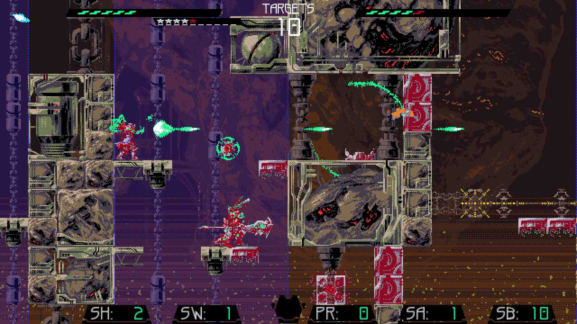 Choose between two distinct characters, customize them and face an army of modular enemies in a randomly chosen path! A very dynamic arcade experience! Unlock chips and find upgrades for more customization options on the next playtrough! Quickly dispatch enemies and bosses with weapon combos! For dedicated players: pursue high area ranks on standard modes and fast times on Speedrun mode, with fixed sequence and a timer! The game had a few strange design choices, but overall I thought it was pretty good, I was just a little confused at first. I assumed it was something similar to Contra, but it’s actually more of a rogue-lite (ish) game, well I would not call it a rogue-lite, but you have 1-life for the entire game, and the stages have some randomized elements like different bosses and different preset patterns, plus you can unlock different weapons and passive upgrades that you can pick prior to starting the run.