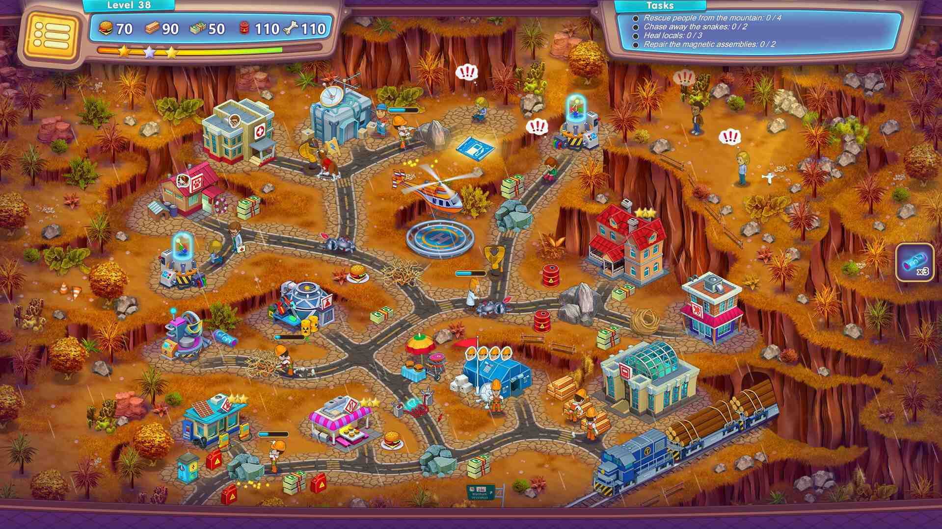 In Rescue Team: Magnetic Storm, you find your world in danger once again, but this time by unprecedented natural disasters caused by intense solar activity. As you navigate through a city in chaos, you’ll act as the guiding hand for a team of rescue workers tasked with restoring order and helping the people in need. With each level presenting new challenges, you must repair electrical systems, rescue stranded or trapped people, and gather crucial resources while avoiding dangerous hazards such as electrified water and boiling lava. Along the way, you’ll encounter panicked citizens suffering from a variety of health issues caused by the magnetic storms and encounter wild animals disoriented by the disturbances to their nervous systems. As you progress through the levels, you’ll work alongside Dr. Ross and his team of scientists to investigate the cause of the magnetic storms and find ways to protect the population from their harmful effects. With limited time and resources, you must make strategic decisions to prioritize your actions and help those in the greatest need.