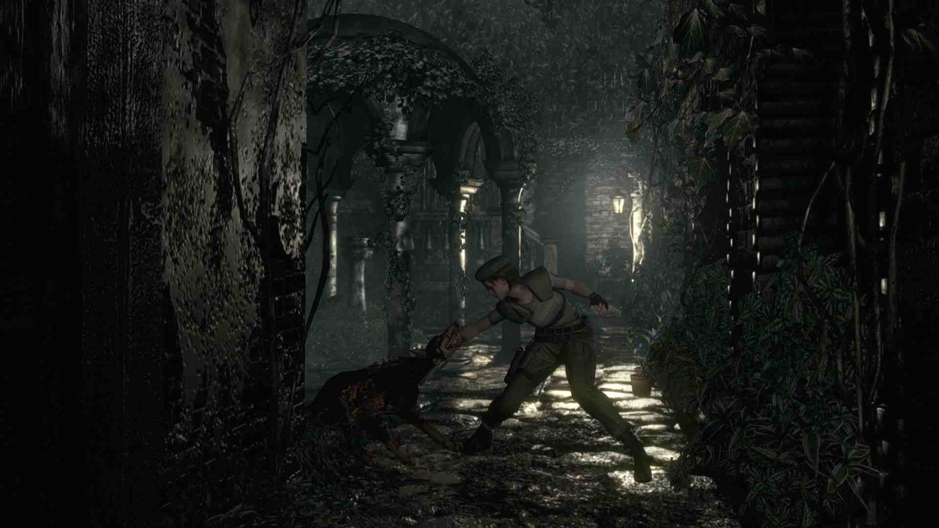 The parts of the screen that get cut off on the top and bottom will scroll into view automatically depending on the character’s position. You can switch the display mode during gameplay in real time. Sound & New Controls High-Quality Sound – The audio has been remastered to increase the sampling rate, and of course 5.1ch output is also now supported. New Controls You can play using the original control scheme or an alternate control scheme. The remake features all-new graphics and sound, and also incorporates gameplay elements from the earlier installments (such as the use of body language and the 180-degree turn). While the overall plot remained mostly unchanged (with the exception of adding the George Trevor diaries and, in the case of the Barry Lives ending, the implication that Wesker managed to escape into the night), several new areas and rooms were added to the game, including a graveyard and a cabin in the woods. In addition, other areas are also condensed. A notable example is the room the Tyrant and Wesker were in.