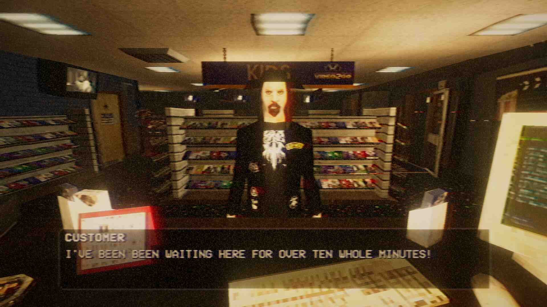 Rewind or Die is a heart-thumping, blood-dripping blast from the past. Your co-worker flaked out on their shift yet again and it’s up to you to cover them. And of course, there’s a serial killer who’s been staking their claim in that area. Just another day at a video rental store… right? Deal with irate customers, horrible bosses and keep your VHS store clean (or at least as clean as it can be). Don’t worry about the occasional creepy phone call or that person watching you through the front window, it’s all part of the job. it was pretty good. The game’s greatest feature definitely is the design of the first two areas namely the city and the video store. The video store has the be the best I’ve ever seen in a game yet. It looks very authentic. Its worst feature has to be the sewer level. Indeed, there is a sewer level in this game and it’s such a pain to get through. Basically there’s this maze in the sewer where you need to flip 5 switches while getting chased the whole time.
