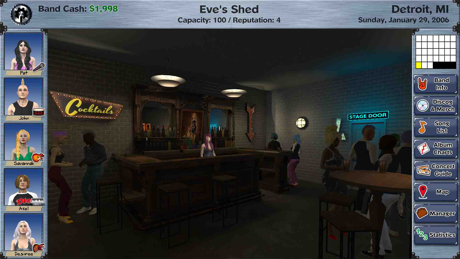 An endless grind to just raise your popularity in the whole world and fish “hits” by complete rng generator because all your songs will be already 100 quality-capped and you can literally “mass-produce” 100 quality. However only a very few randomly picked from them (by a complete rng) will be actually worth something (means hits). And there is nothing you can do to improve your chances in that regard. Of course, trashing hotels is half the fun of touring, but you’ll have to pick up the tab. You can even buy a home in each city, to make visits more convenient than staying in a hotel or motel. This game was fun for me to play. So… it’s a positive rating for sure. But the end-game feels like a big missed opportunity. It should be much more compact and non-repetitive. The world tours and travels should be done in some time-shortened and size-limited form. Right now however, the cap is just 100 what is very easy to achieve once your band has leveled up and in the end it does not even truly decide if the song will be a hit or not.