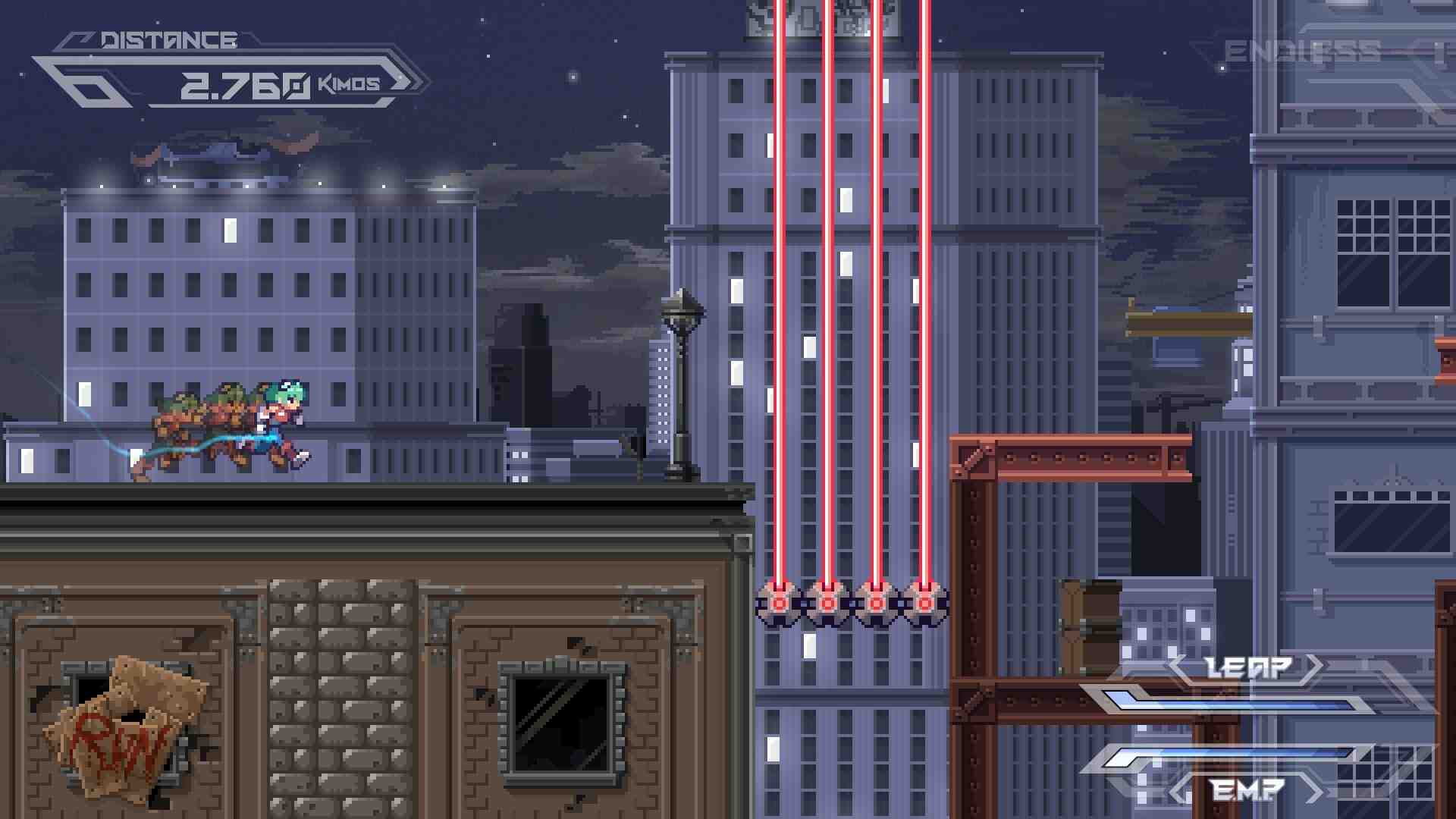 Run or Die is a fast paced Endless Runner that focuses on movement based abilities (and a huge Ion Cannon)! Players must make decisions in the blink of an eye and react quickly in order to make their way through a hazardous city environment where every run is different! Can you make it to the Lab to save Flow? The main mode of this game is the Endless one. Contrary to many games like this one, you barely gain speed in case you’re reaching further zones in the game. Instead patterns become harder to avoid and faster, more complex and more accurate reflexes are needed to keep going through. Despite having a total of 5 skills, in this game you can only use 2 of them at the same time. As I said, this game is RNG, so skills are chosen randomly and you adapt yourself to them. Patterns will appear according to your skills. In case you get far enough into your run, you’ll eventually reach “Safe Zones”, where skills can be changed for others and further patterns will become more complex.