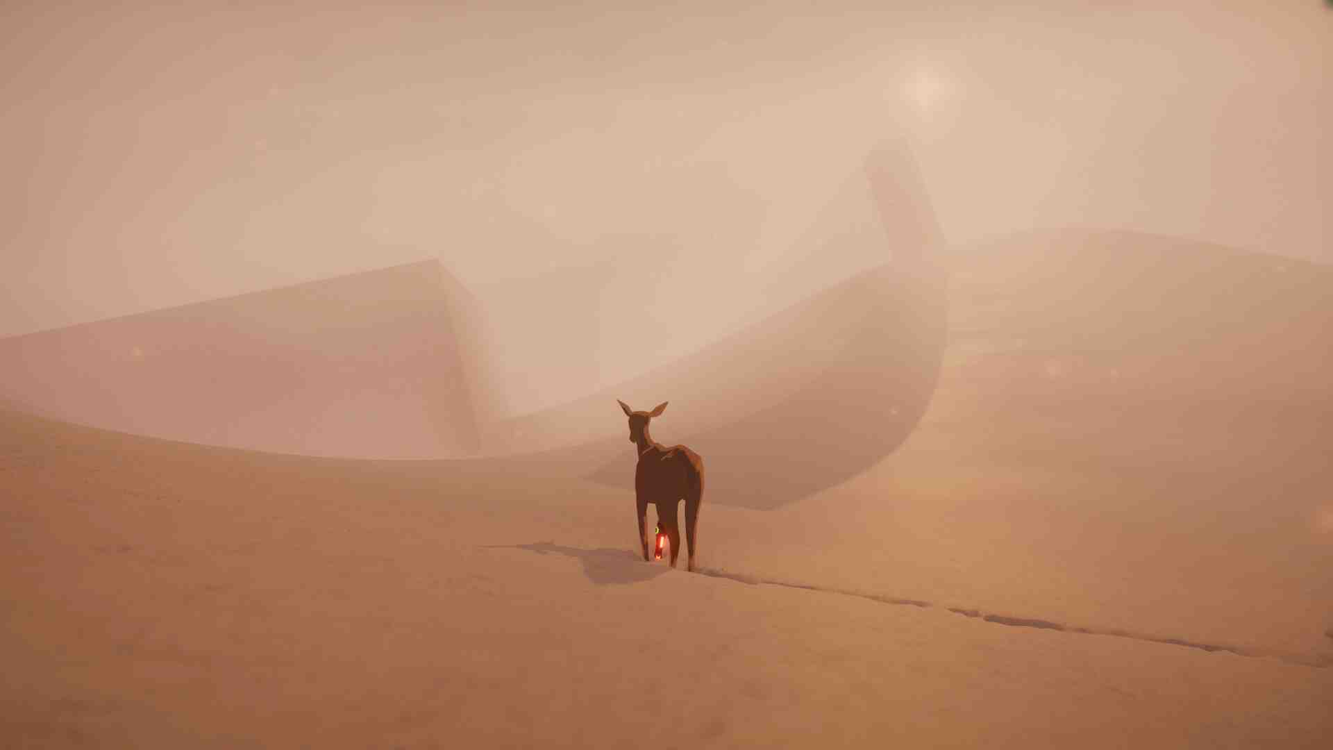RUSA Odyssey is a third-person exploration game set in the post-apocalypse world. Play as a lone deer and traverse the unknown world. Find a way to The End and discover the story along the way. You play as a deer, explore the world, and find your way to The End. The character models often look great, but their expressions felt a bit off at times, however in this game it’s off the charts. I can’t tell if this is the buggy nature (more on that a bit later) but characters often have these really stiff and weird smiles and they just look off in the distance like their faces are glitching out, it’s especially hilarious in the opening prologue of the game.