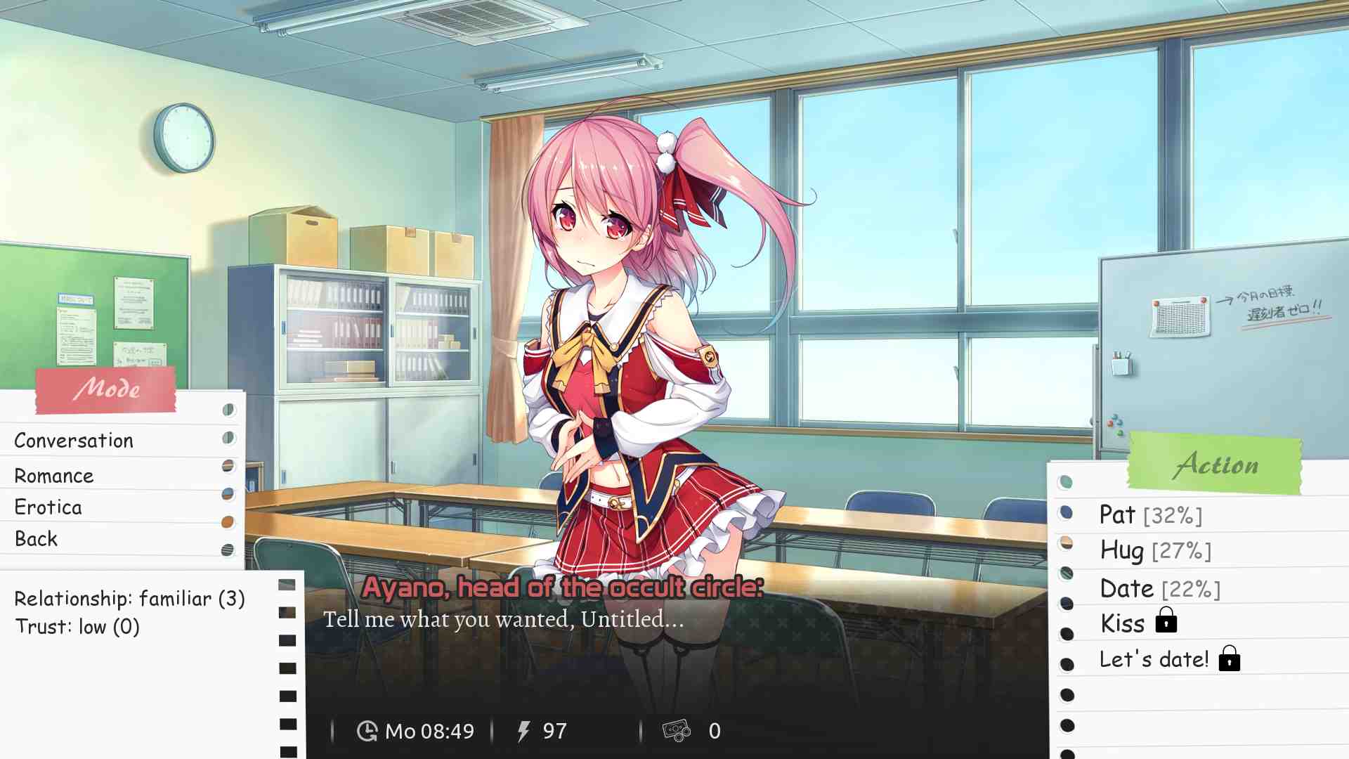 All in all, if you’re into school simulators this might be for you, but really there are better ones out there that use their own assets and at least attempt to be unique. There is an ultimate decision in the game where you essentially choose between keeping a developed character in the game or choosing the logical decision of usurping her which causes her to disappear entirely. Why is it logical? Because all the given evidence points to the character needing to be replaced, to such an extent that the character even had planned this entire affair for you to replace them. So if usurping her was a mutually beneficial goal and she has shown quite the interest in you, why does she just disappear from the game entirely? It makes either decision not sit right with me for the wrong reasons.