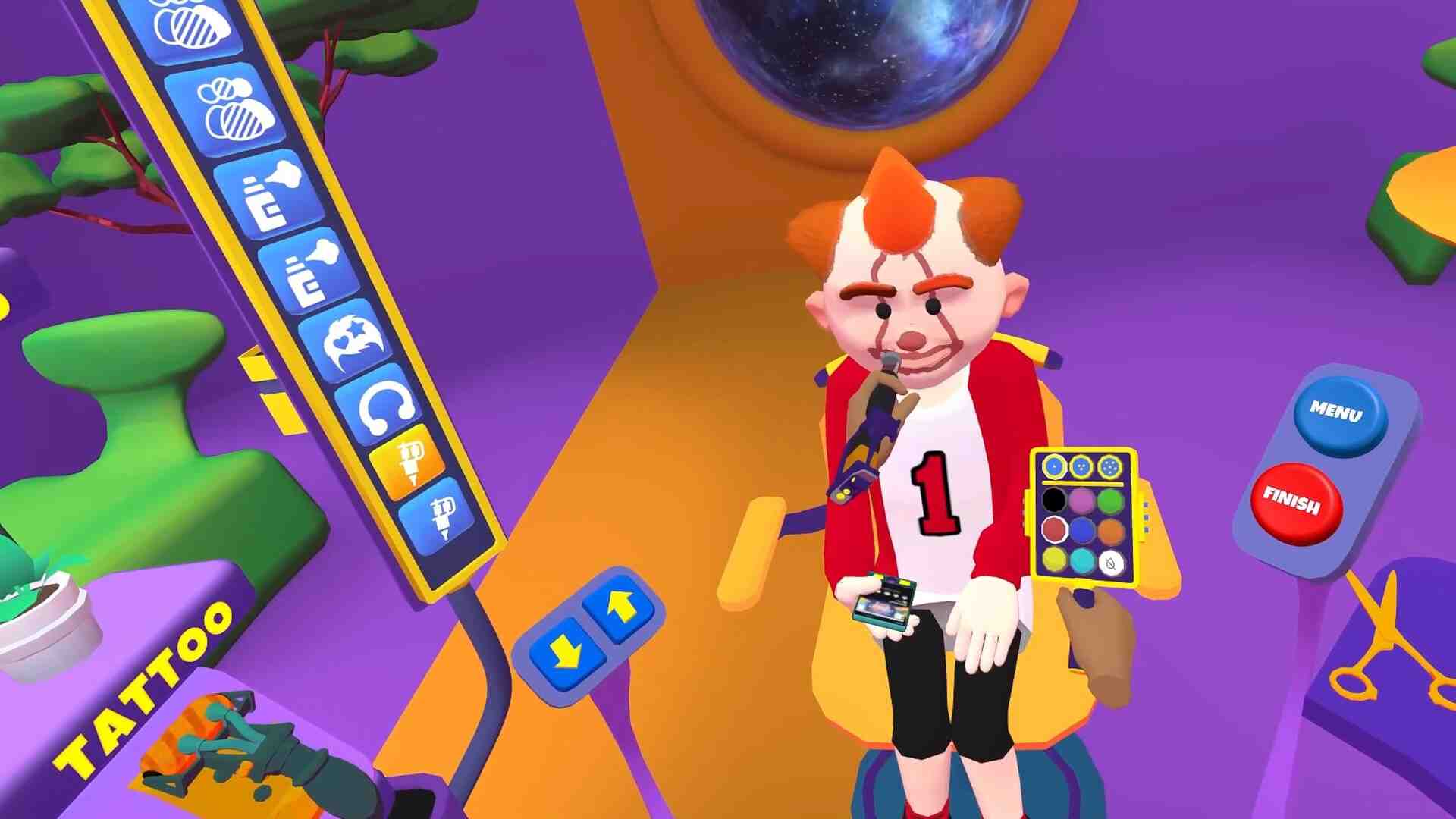 Let your imagination run wild and create the craziest hairstyles you can imagine! Discover all Shave & Stuff’s tools and give your clients an experience to remember in your barbershop! It took me about an hour to unlock everything. Obviously, you can continue playing in any of the three modes available for endless play. They include barbership mode, tattoo parlor mode (you’re really a barber who also does a tattoo), and the creative mode. Game is running on the Unity Engine. I did have frame rate drops during my gameplay. You also have full locomotion and smooth turning available. I found I did have to play standing though, otherwise I was too low to the ground. You can adjust the barber chair, but not enough for seated play (at least not for me). You also have magnet hands. the game was just okay. If you’re looking for an arcade game where you can do some silly hair cuts or tattoos, then you may enjoy this game. If you’re looking for a realistic experience, you’ll be sorely disappointed.