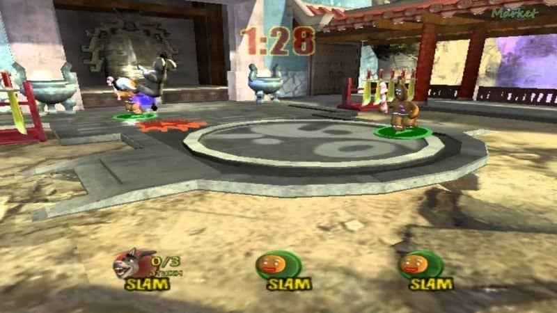 Shrek SuperSlam Ogre-sized brawling action collides with the hilarious Shrek universe in Shrek SuperSlam, the ultimate four-player melee game. Choose to play as 20 characters including Shrek, Puss-in-Boots, Princess Fiona, Donkey, Prince Charming, and Cap’n Hook. Battle it out in 16 fully destructible 3D environments that parody famous fairytales and pop culture. Unleash power slams, taunts, and signature attacks, including Shrek’s room-clearing Green Storm, Puss-in-Boots’ disarming Love-Stun, Donkey’s dexterous Juggle-Punt, and Pinocchio’s Spear of Truth, in which he dive-bombs enemies with his famous nose. Collect 30 potions, weapons, and magical items, including the Giant Ham Hock, Horned Viking Helmet, and Speed of the Gato potion. Flex your fingers in more than 30 minigames. Unlock new characters, arenas, and costumes along the way in the single-player story, ladder, and mega challenge modes or frenzied multiplayer melee combat games.