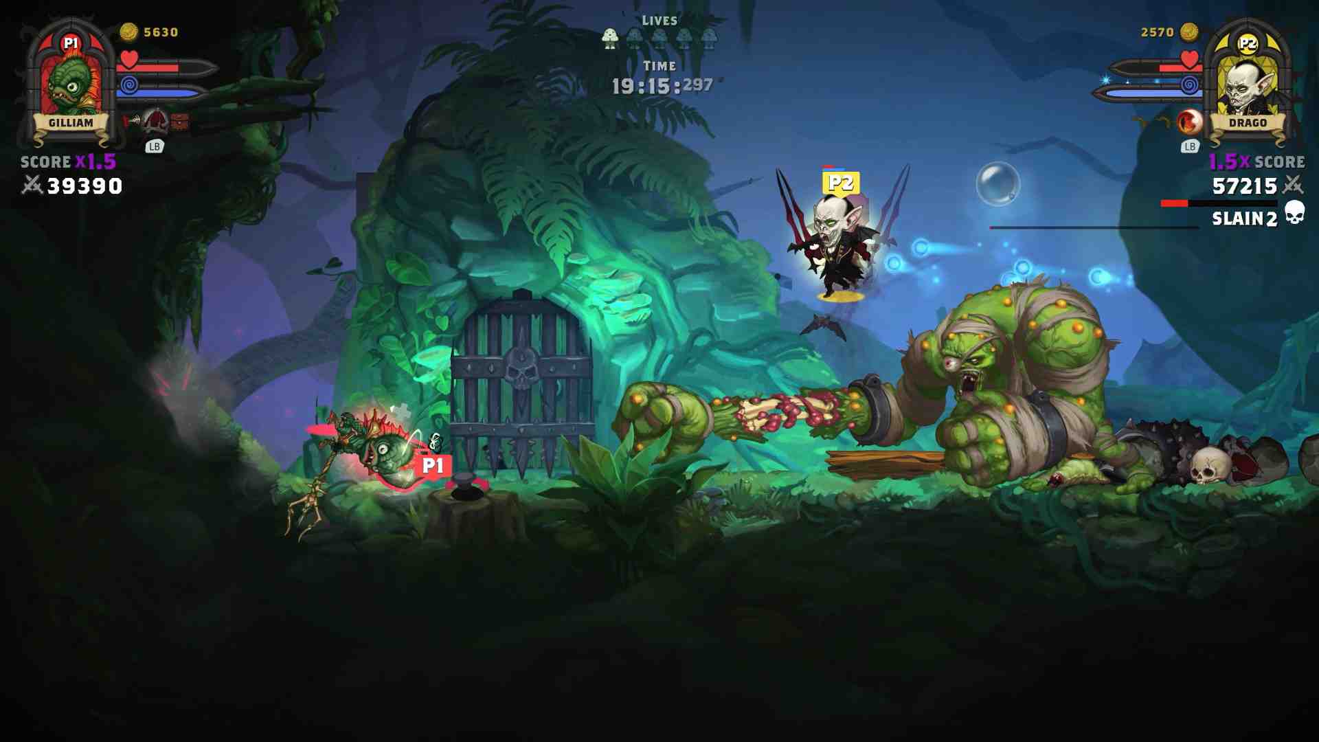 Fight battles solo or with friends locally and online (Beta) in this frantic gothic butt brawler, platform-brawling, co-op adventure for 1-4 players. Experience fast paced tactical combat as you battle a host of enemies, minibosses and giant bosses. 12 playable diverse gothic heroes to find, recruit and upgrade. Unlock and collect an array of usable scrolls, potions, weapons, traps, staffs, grenade bags and many other items. Pick up, aim and kick everything you can lay your hands on – stunned foes, skulls, brains, rocks, cabbages or even friends! 17 hand-crafted non-linear levels to explore across 3 vast regions. Lush, hand-painted artwork complemented by glossy VFX depicts an atmospheric world of ghosts, demons and ghouls that chills and charms. You start the game obviously with the tutorial where you meet 2 characters and learn their basic abilities. Then you are off to open up on the world of zombies. No only can you take the traditional route of killing things, you can also use items that area around you and the zombies themselves.