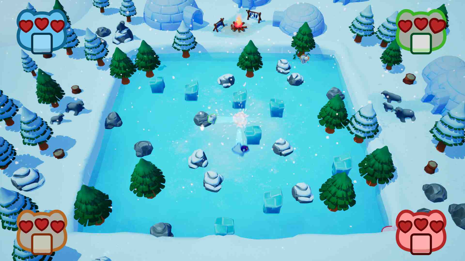 Sliding Bears slid your bear baby to the finish line! Enjoy yourself while sliding on ice in Sliding Bears, where you can compete with a friend and some robot-cubs to see who’s the best! You can walk about a snowy arena in this game, but exercise caution—once you make your move, the only thing stopping you will be a wall! Thus, exercise caution and consideration when moving to avoid being eliminated by your adversaries! Entire population of puzzle and bear lovers, unite! In the endearing game Sliding Bears, cute characters are combined with cunning gameplay. This game is ideal for a quiet game night or some private brain tease because it can be played alone or with a friend. Envision a frosty wonderland! In Sliding Bears, you guide adorable bear cubs as they make their way across a treacherous ice floe.
