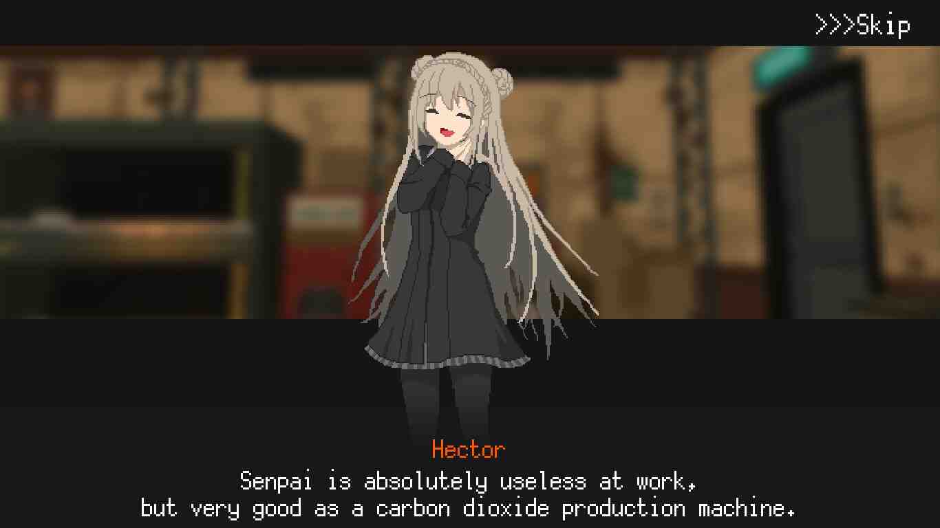 Play as Snezhinka, a fixed-term contract employee at a private military company, and hold the line against waves of hostile mechs in a 2.5D dystopian world. In order to survive against increasingly powerful enemies, you’ll need to use what remains of your meager salary after taxes and other expenses are deducted to purchase cards and develop your combat capabilities. This fast-paced shooting game can be enjoyed with a controller or a mouse and keyboard. The controls are simple: you’ll only need to move, aim, shoot, and use gadgets. In addition to a robust story mode, this game also features two challenge modes—complete with online rankings—and a collection in which you can rewatch cutscenes and peruse information on the game’s characters and weapons. Snezhinka’s older sister is a member of the elite Molten Iron Squadron.