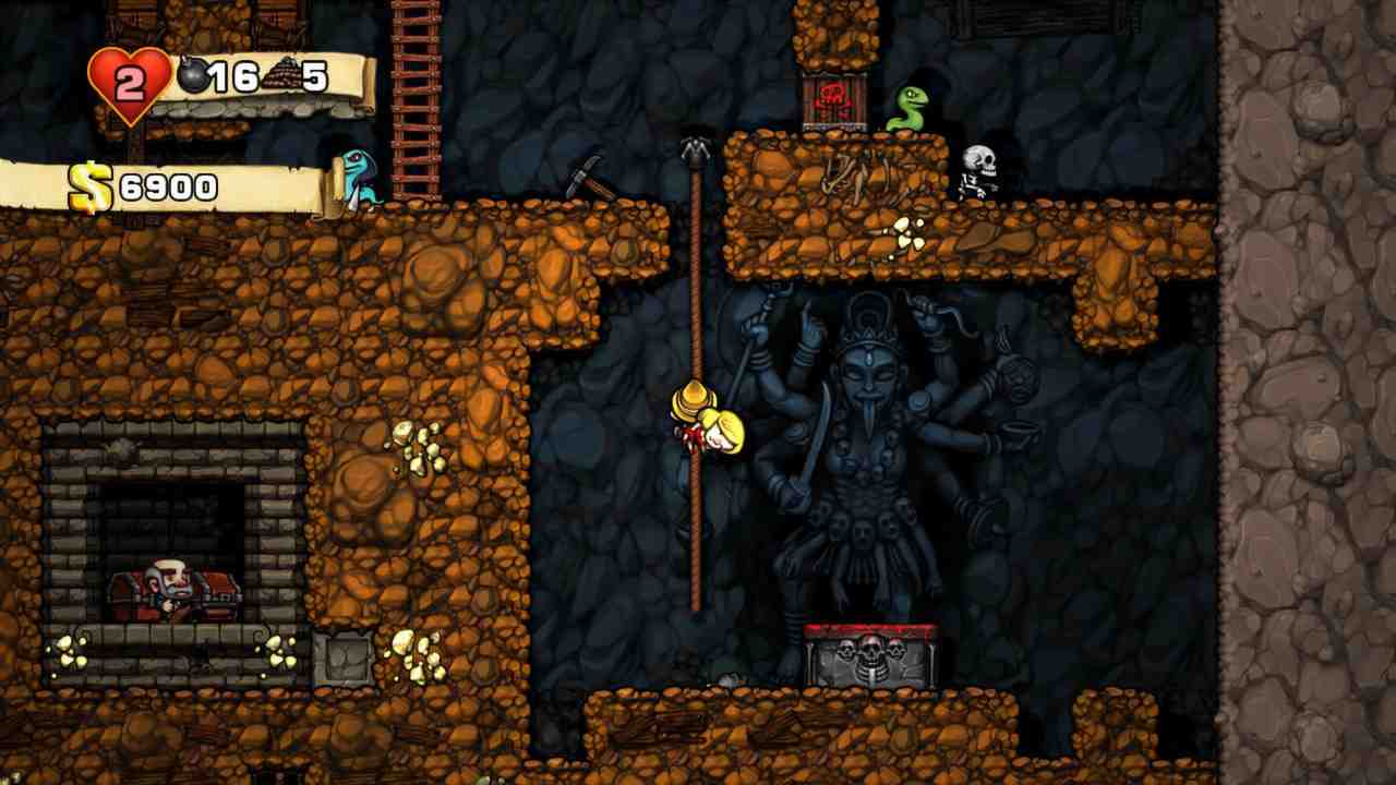Spelunky also offers cooperative multiplayer, allowing up to four players to explore the caves together. The game’s multiplayer mode adds an extra layer of strategy, as players must work together to navigate the levels and defeat enemies. Cooperative play also provides a different experience from single-player mode, as players can coordinate their efforts and develop unique team strategies. This mode can be played both locally and online, offering players the opportunity to team up with friends or explore with new partners. Spelunky is known for its challenging bosses and enemies. From giant spiders to undead shopkeepers, the game’s enemies provide a variety of challenges for players to overcome. Additionally, the game’s bosses are unique and challenging, each with their own specific mechanics and weaknesses. These bosses provide a satisfying and exciting climax to each playthrough, requiring players to use all their skills and abilities to emerge victorious.