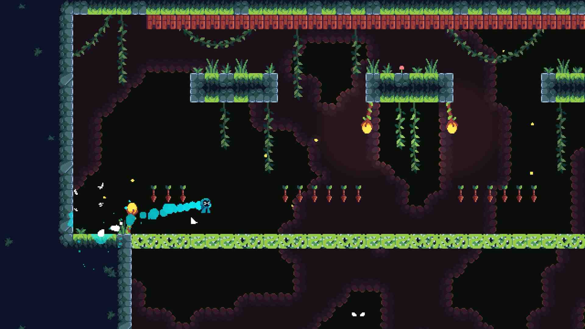 Playing this game was a constant uphill struggle, just when I felt I had started to understand a mechanic or had gotten good at precisely throwing a potion while parachuting so I didn’t hit spikes the game would immediately put me in my place. Lengths of levels were something that did begin to get on my nerves. As each level is so bite-sized it’s understandable you could get through them in seconds before moving on. I found a lot of the levels would have a gimmick or plan to it. But then would add one more step or two to the end that would make things especially frustrating. One of the best examples of this is a room with low ceilings and arrows that you need to get through with short hops. To get through one corridor would be easy, two or three a bit more of a pain, but having to get through five corridors like this felt like a bit much. That being said, those levels where the gimmick requires just that bit more perfection will be the ones that gamers looking for a difficult platformer will really eat up.