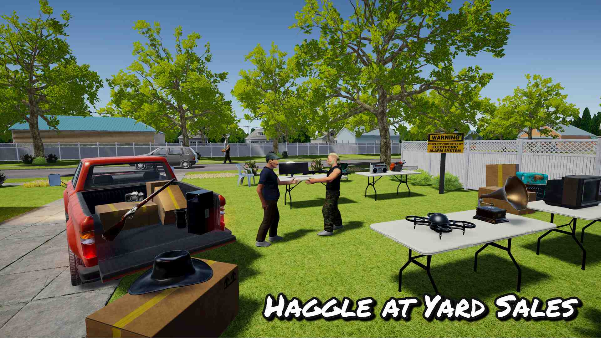 Gain experience by hustling, and level up your character. Unlock new Character and Trader skills to make your life easier and your wallet heavier. Repair broken items to make them pricier. Scan them to know their perfect price. Upgrade your tools to get the best of them. But still, your best tool is your ability as a salesman! Increase your life quality to get into the sigma entrepreneur mindset. Buy a house, upgrade your car, live life to the fullest.Starting with a home, a hammer, an object scanner, and a pick-up truck, the player goes about acquiring objects from abandoned storage units and yard sales through buying low and selling high. More money allows for the player to upgrade their hammer and object scanner so they can make greater improvements to objects below perfect condition and use their scanner to find the value of greater valued items to which they sell on the internet. Earning XP flips the difficulty curve and allows for more effective haggling with buyers and sellers, along with discounts at winning auctions on storage units.