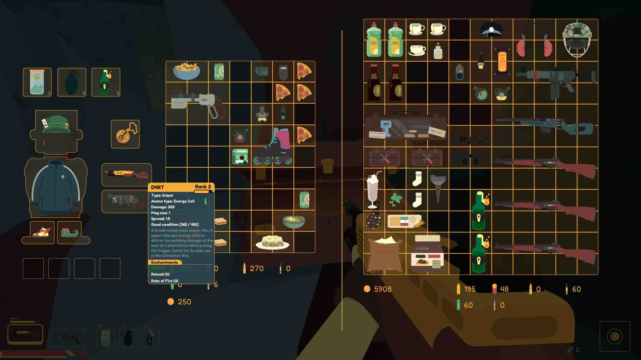 Whether they despise, admire, or ignore you, your path is yours to forge. Stay alert; these encounters may offer insights, but ultimately, it’s up to you to push forward and find the answers you seek. Amazing game. Running into a nightmare flood of enemies and mowing them down with your prized guns is amazing. Only issue is the rare bugs. Beware the wall machine gunners. The shooting it tight, the controls are tight, the guns are awesome, the upgrades and enhancements for the guns are great, the cooking mechanic is interesting, the music is banging, the art styleis cute yet still bloody and gory, and the game is pretty darn hard.