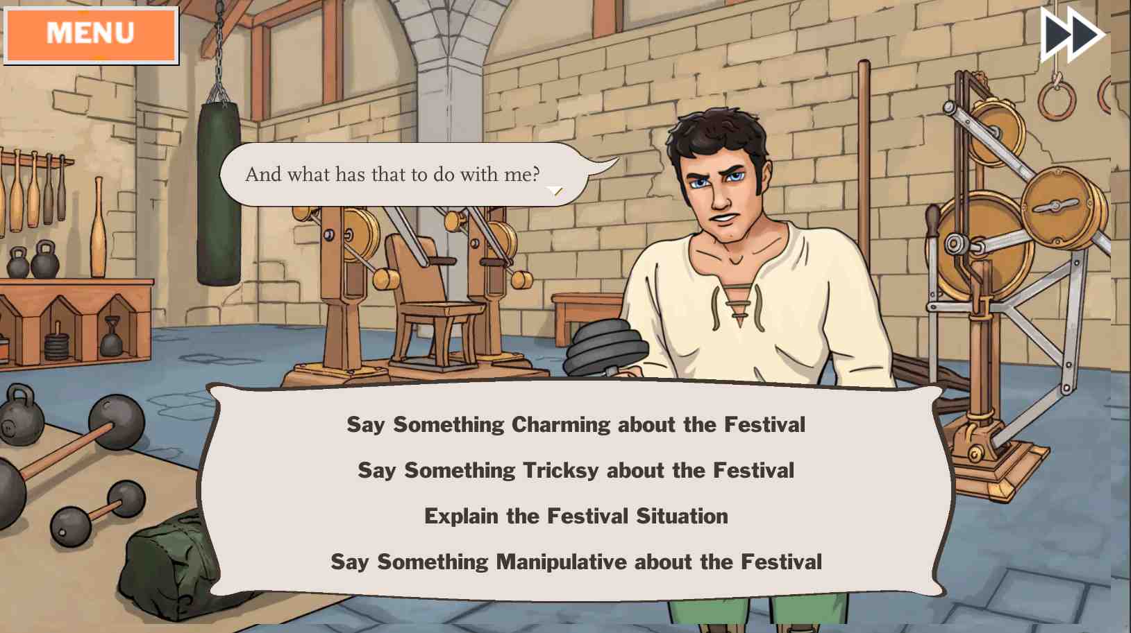 It took me about 2 hours to play through the game. The voice acting was great and the game has ton of replay-ability. So some of the elements of the game are time management, problem solving through dialogue, trying to make friends/convince them to help you with the festival, and the game takes place in an interesting fantasy setting. I have played it twice so far and enjoyed myself. Your choices matter – There are multiple endings and hundreds of paths through the game! Play again (and again!) to make friends with more characters and make a more successful festival.