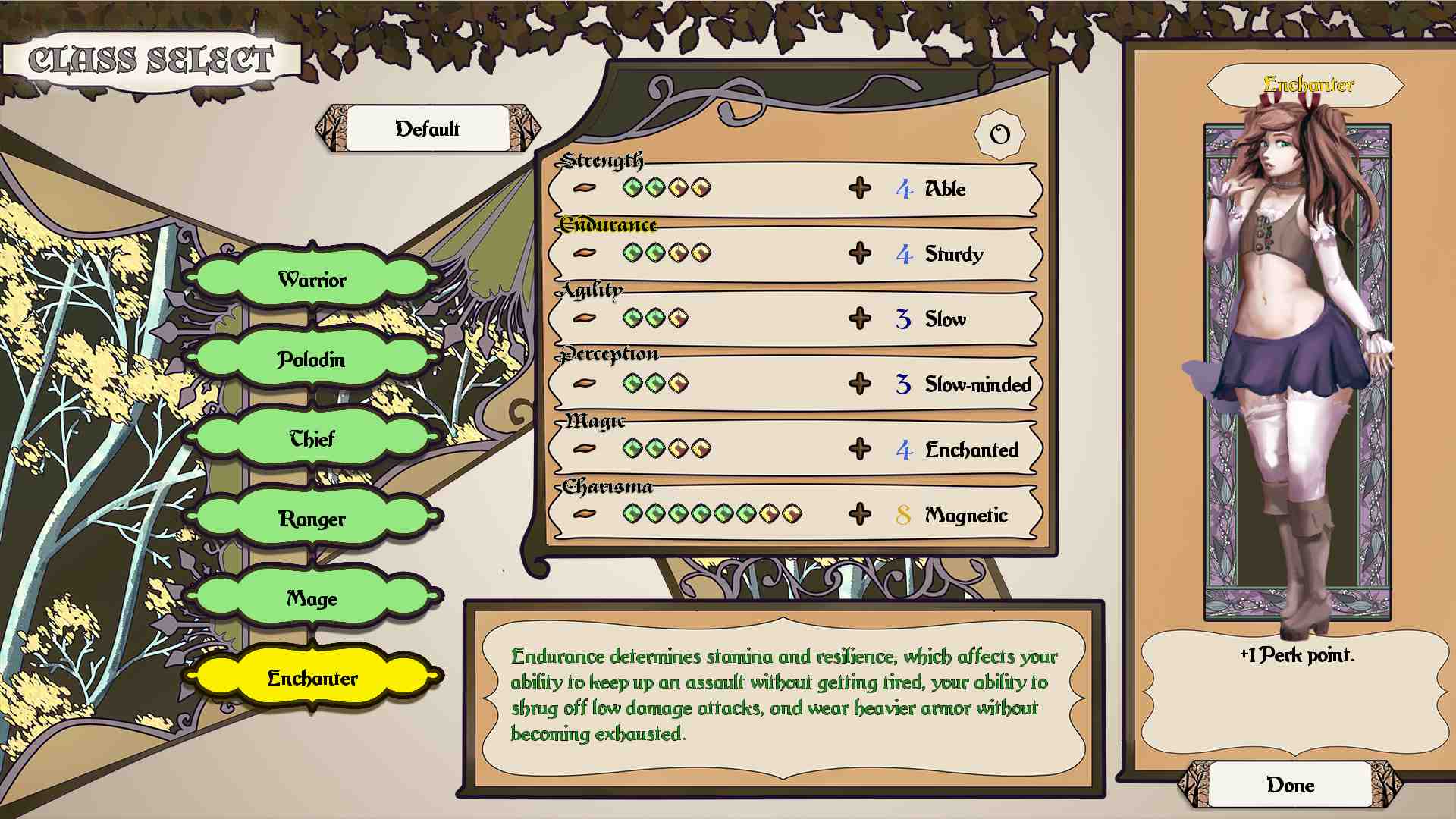 At the start of their journey, the player can select one of several classes for Hiro to be. Each class has a set of base stats and equipment. Stats can be raised, during the character creation, by 2 from the default value and decreased by 1 (minimum 1), to gain additional Stat-Points. Achievements are given out for completing special objectives in the game. Completing Achievements will also award you additional Bonus Points to use on your next run. A list of your currently completed Achievements is present on the Progress screen of the Main Menu. An asterisk (*) will be shown after achievements that are completed in Iron Man Mode. Completing Achievements in this way awards additional bonus points.