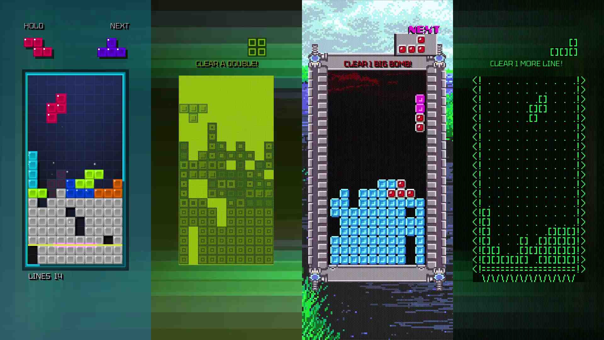 And as this celebration wouldn’t be complete without an all-new Tetris experience, prepare to enter the… Tetris Time Warp! Up to four players will “warp” between different eras of Tetris in real time to experience a variety of classic graphic styles and play mechanics! If you’re not interested in the special features or the accompanying Tetris documentaries and media, you’ll probably feel the price is too high. Fair enough. Those of you wanting a modestly-sized, low-priced, and comprehensive collection of Tetris and Tetris-adjacent games from across the platform landscape will not find what you’re looking for here.