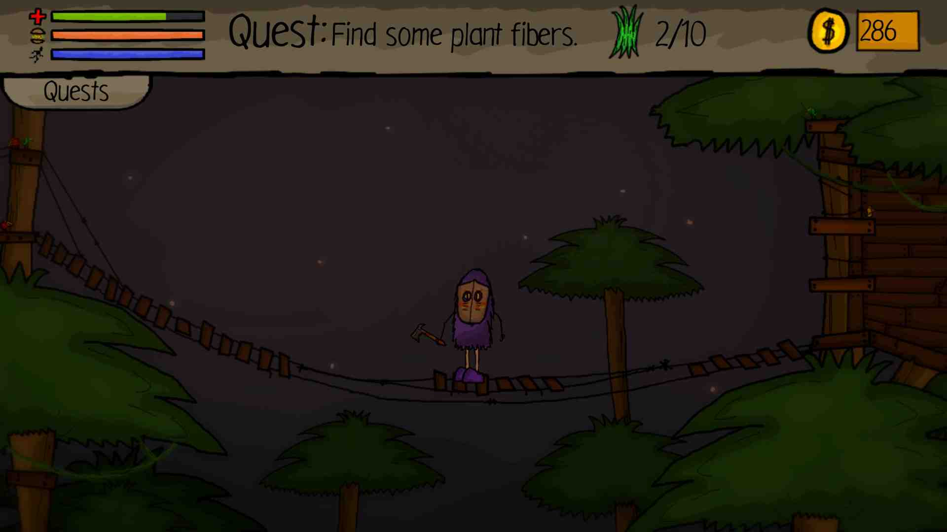 Furthermore head gear also gives you extra stats such as long sprint or more regen from food etc. It has a small aspect of survival with a food bar below your health bar. Keeping an eye on these two bars is essential and you need to make sure you have food. on you at all times! Or you will suffer. You can even hire a fellow town member for 10 gold pieces to go out and scavenge food for you! So that is always a last resort! You can pick up quests from fellow trees who will offer you rewards if you complete them. At the moment they seem pretty simple. Go out and grab a certain number of the item and bring them back for a reward. Im hoping eventually they may be qeusts to kill certain monsters etc that would be a nice addition if it isn’t in the game already. a fun little guy from the species of Formongers, the most scientifically advanced species of Formagetus, a peaceful little country, that was, until the malevolent Florps rose from the molten core of Formagetus, in seach of food, they laid siege onto the peaceful isle (I couldn’t make this up if I wanted to).
