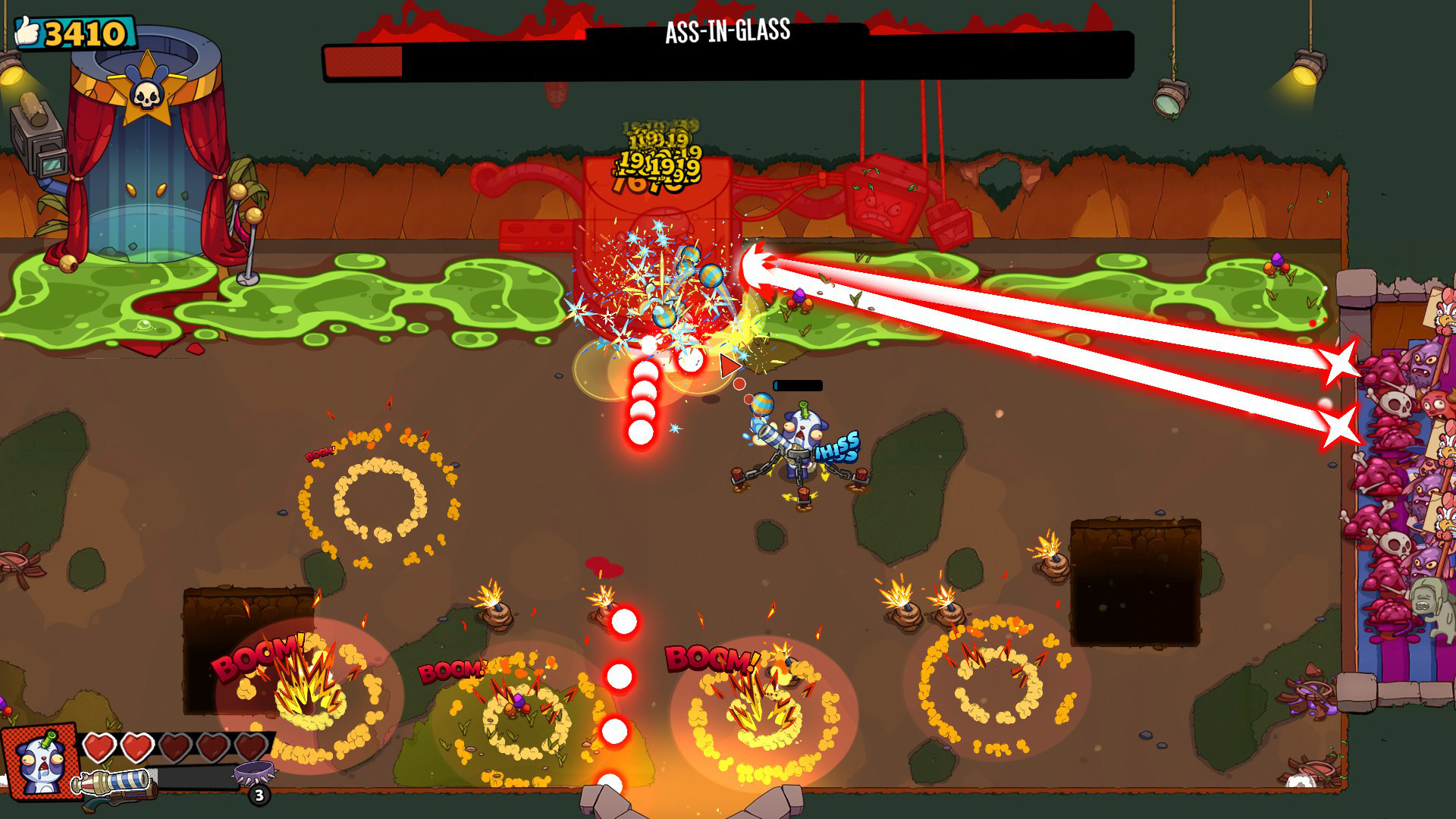 You’ll still die, though. That’s just how life is, even for those who wield a rail gun. But who cares about death when your audience loves YOU? Unlike real life, here you can make good use of the likes you receive. Use your new-found fame to help upgrade every item and every perk to deal even more damage when you head out again. Oh, don’t worry about getting bored: every episode of the show is randomized so you’ll never have the same run twice in-a-row. And, when you are completely done with show business, invite your friends and party-up with co-op mode with up to four players! Play smart and synergize with the team or bash their teeth in when they will try to steal your power-ups: every dirty trick in the book is valid, and every strategy works as long as you are having fun. So, are you ready to sign the contract?