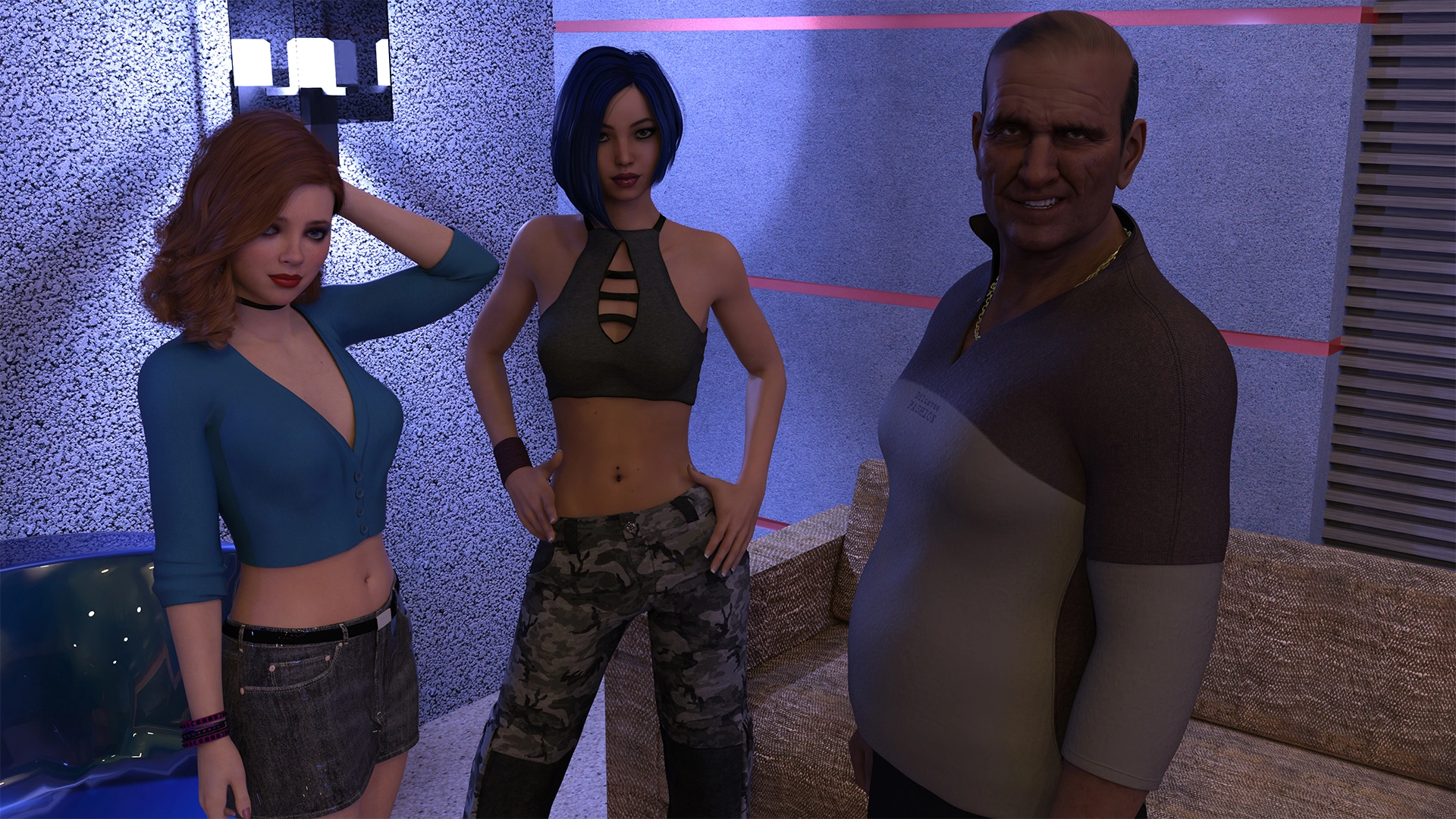 The Higher Society Illustrated This is the story of how Angelina and her stepfather became members of The Higher Society. You play the role of the stepfather. As a respected actor in Hollywood, you get the opportunity to join THS. This is a secret society made up of some of L.A.”s most powerful people. It is also a society that is based on traditional gender role patterns and a strict hierarchy. A society full of money, power and beautiful women may seem alluring, but can you combine this life with being a husband and father? Your relationship with your daughter is put to the test when she shows interest in both THS and you… The strongest point of this game is the concept/story, sure more interesting than most other games, though it doesn’t quite live up to it’s full potential. Girls are cute, if a bit boring.