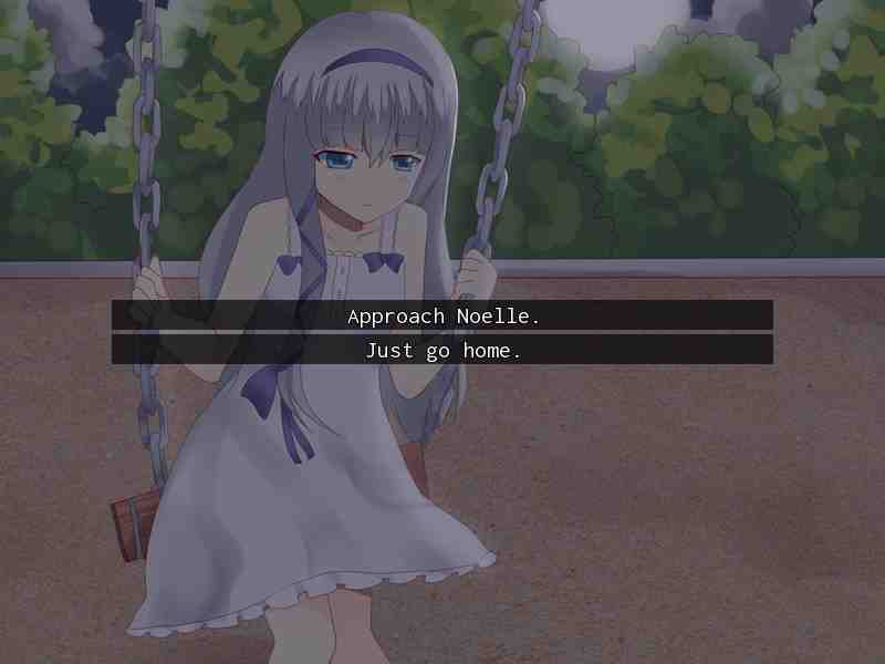 Attchan is a seemingly gentle, shy and over-critical young boy when it comes to his own insecurities but essentially he really is a coward and hideously self-centered if you are to take a close reading to the text. He is overly passive, and sometimes you wonder “how the heck that ended up happening???”. It’s as if the boy has no free will at all! Aside the crybaby protagonist, I especially liked Amu as a character with her marvelous inner strength, and about Noelle… well, any comment about that would come as heavy spoilers. I won’t do that kind of evil deed on you. You spend your time back visiting two girls each with very different personalities. One is your typical loud & fun loving girl (Amu) and the other is the shy & reserved type (Noelle). There are a decent amount of choices to be made. Start to finish clocked in at 61 minutes for me, I could see it being around 90 minutes or so if you’re a slower reader.
