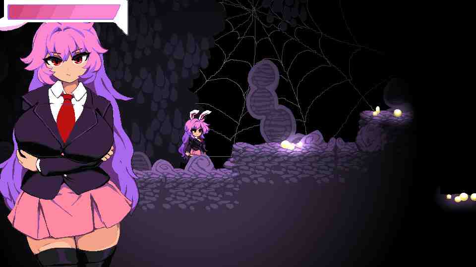 Udonge in Interspecies Cave Video Game Dreadful monsters were stirring in the cave where Udonge had fallen into. Low-class monsters starving for females creep up, one after another. Can she escape the violence of sexual desire, or will she be trapped and have everything destroyed by sheer pleasure and humiliation? This is a derivative work, a fan work of Touhou Project. Udonge in Interspecies Cave” is a simple action game. Move, jump, shoot! Use these actions to break through the dungeon teeming with monsters. Defeat the three stages and their bosses. This game is a somewhat easy platformer based around the character Udonge from Touhou Project. While it is focused mainly on the visual aspects, the gameplay, simple as it may be, works very well. It doesn’t feel to awkward, apart from attacking while jumping or spamming attack. The game is also quite short featuring 3 levels that can be finished in around 20 mins total time, if checking all the capture scenes or less if rushing through. The art style, a high-res pixel art anime style, is very good. The scenes in the levels and the death/capture screens are nicely animated.