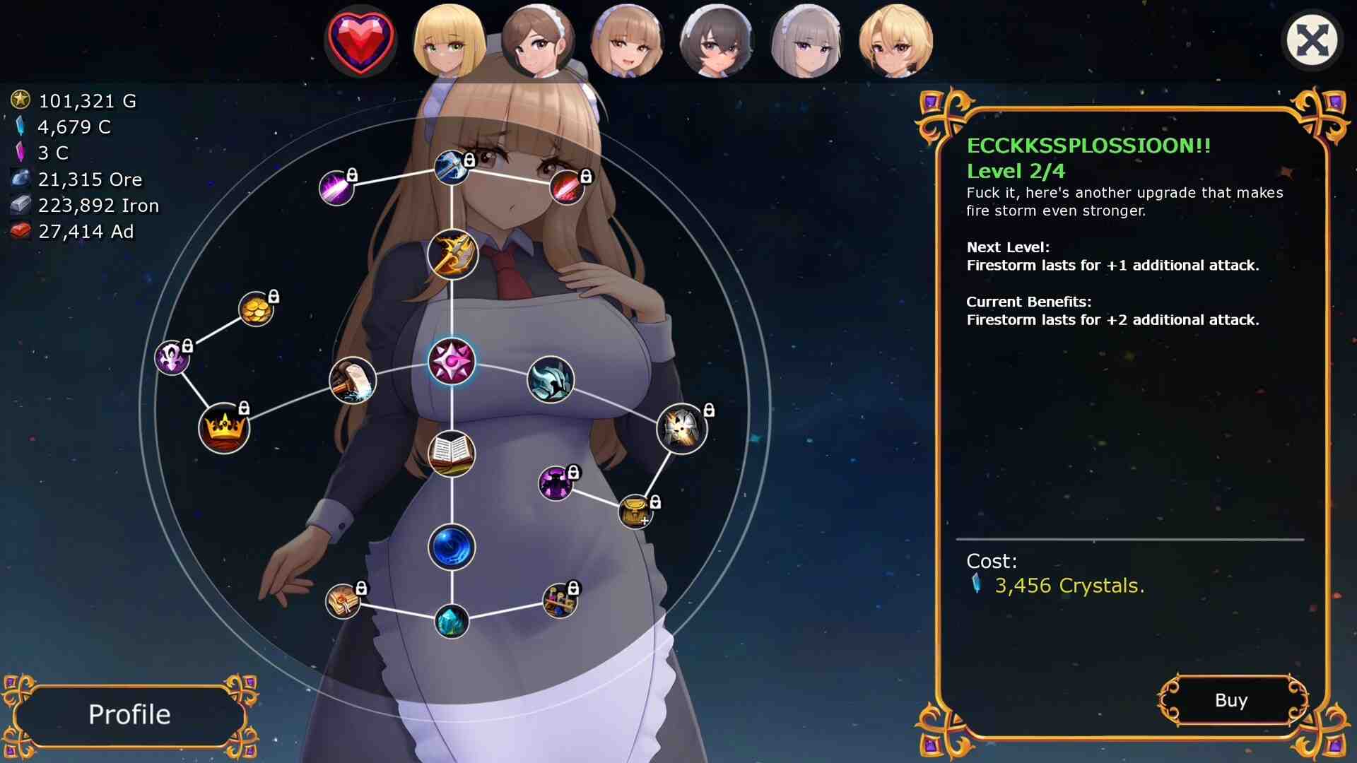 Gratifyingly, animated sequences are also woven into this composition. Indubitably, a creation deserving of my ongoing attention. A commendable harem endeavor accentuated by captivating role-playing mechanics. Ideal for individuals harboring a predilection for maids (or nuns). I find myself occasionally bereft of voice acting within intimate moments; hence, that particular facet stands as an additional virtue. The aesthetic exudes charm and originality; you’ve mentioned a tendency for a hectic update regimen—will this platform invariably host the future updates? I extend my gratitude for bestowing upon us this creation and investing your time and exertions. Best wishes and good fortune encompass your undertaking. Favorably, an entire mansion staffed with an array of domestic attendants awaits your beck and call, primed to cater to your every whim and necessity. Up to this point, the genesis of this narrative is exceptionally auspicious.
