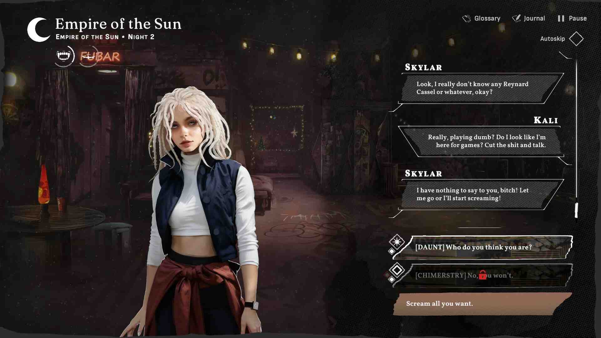 The art is a little worse imo, but still pretty good. I missed the glowing eyes they gave a lot of the kindred in Shadows. Overall, happy with the purchase and I think its a nice addition. I’m so happy to see how much these games have improved since Coteries – this one looks and feels really good and I’m enjoying the characters and the story so far. I also want to point out that this is the first piece of VTM media that made me interested in Ravnos. I’m excited to get more of a feel for the clan in the story. Awesome game. Great storytelling, good music, and excellent art. It gets a little wordy at times especially when it tells you what your character is thinking. The way Shadows handled that was better in my opinion but regardless it’s still an excellent game for anyone who is a fan of VtM.
