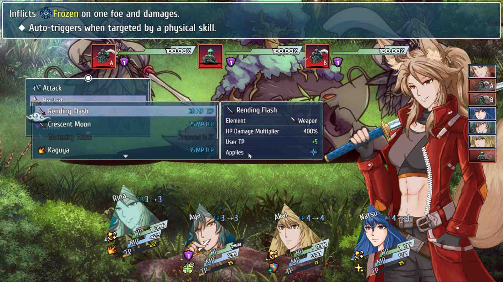 And the supremely arrogant self-styled “Radiant Blademaster” Eisen Rast is obsessed with defeating the skies’ strongest. Can Rina and her friends avoid getting roped into a political conspiracy, one that stretches back 25,000 years? Can Rina avoid tapping into her dangerous “White Demon” persona? Veiled Skies is a “cloudpunk” jRPG that serves as a cornerstone for the Kuroverse, a series of games set in a vast world covering three skydoms. Takes heavy inspiration from Granblue Fantasy. Using a combat system similar to Bravely Default, use your turns immediately to claim instant victory or save them up to plan a more defensive strategy! Combine skills and even items to unleash even more powerful abilities that will overwhelm your foes! Rack up those combo counts to deal crazy amounts of damage!