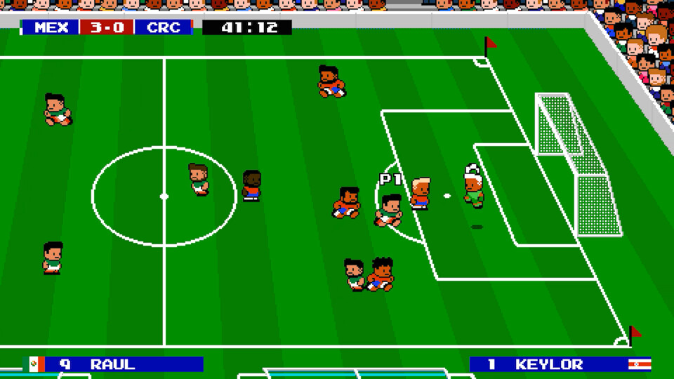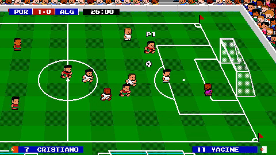 There is no way to look at controls!!…but I whipped my xbox controller up and it’s A for pass, X for shoot and A for tackle and X for slide + left stick for movement+shot direction. So, they were intuitive somehow. There isn’t a button for muting music or reducing the volume! Despite the lack of commonsense options. The game play was more or less expected of this game. You can even cross and do headers and bicycle kicks. THE SHOT/PASS TIMER IS SLOW!! very slow that you get tackled before you even reach the required power to cross. you just get intercepted due to a ground pass or lose possession. The goal keepers are OP though. you can’t change formation match to match forget during halftime lol.. stuck with the same formation all the time. This might be a part of the retro experience.